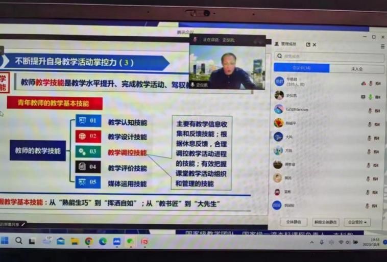 《毛泽东思想和中国特色社会主义理论体系概论》教学团队于10月8日晚线上参与了第15期“讲道理——以研促教Seminar”联合集体备课会。会议邀请到全国教学名师、我校机电学院史仪凯教授做主题发言。史仪凯教授从教师的使命担当、科研创新能力、教学基本功等方面生动阐释如何做一名好老师;从提高教学活动掌控力、做好教学设计、掌握教学技巧等方面分享了如何讲好一堂课,进而讲好一门课的宝贵经验。研讨环节各位老师分别从如何提升教学的创新性,如何进一步加强科研与教学的有效衔接,如何根据“总师型”人才培养目标设计课程思政元素等问题展开了深入探讨和交流。