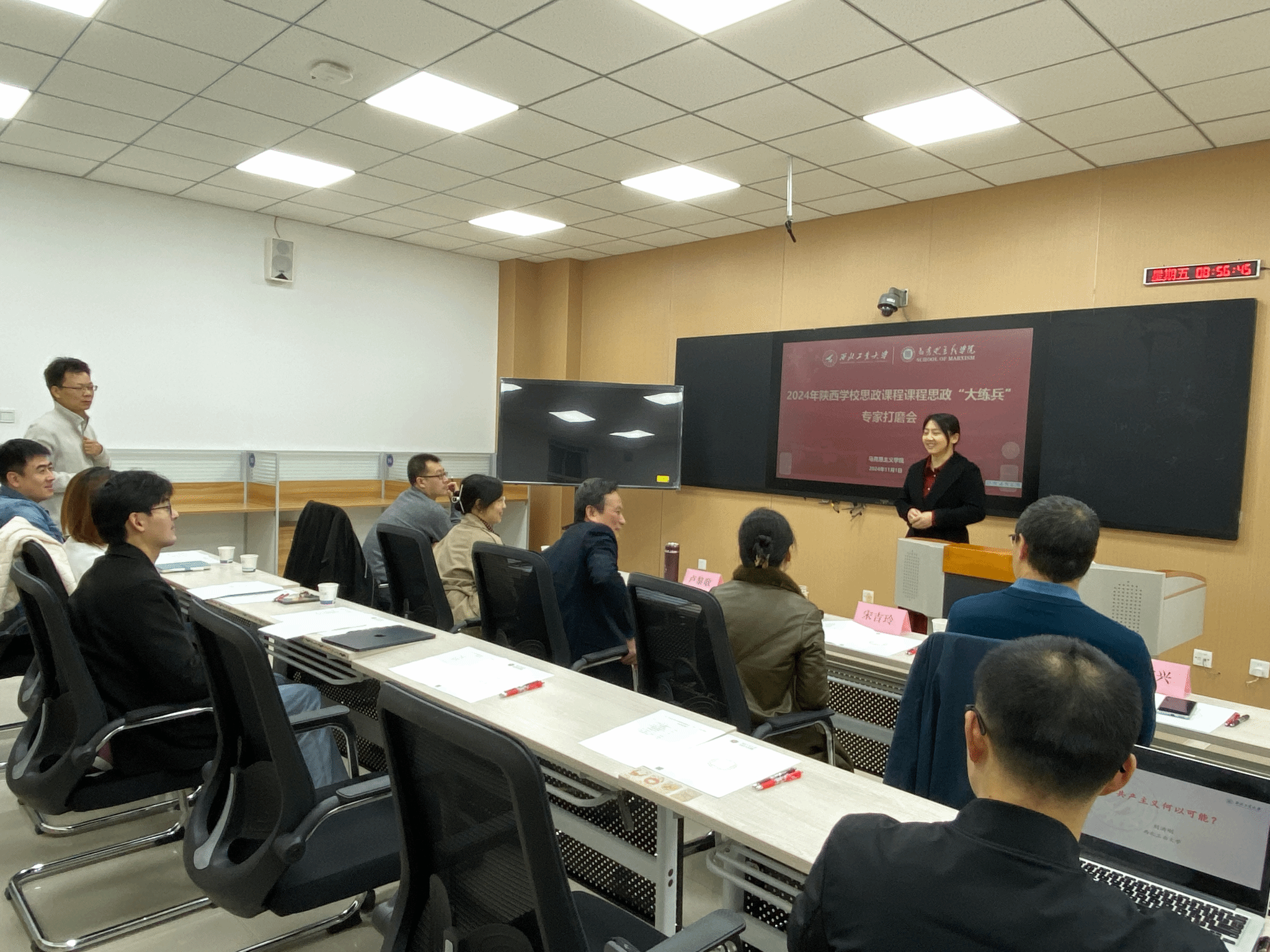 会议最后,参赛教师对专家们莅临指导表示衷心感谢,并表示将做好梳理总结,反复打磨出精品,力争在即将到来的2024年度陕西高校思政课教师“大练兵”省级展示活动中获得佳绩。
