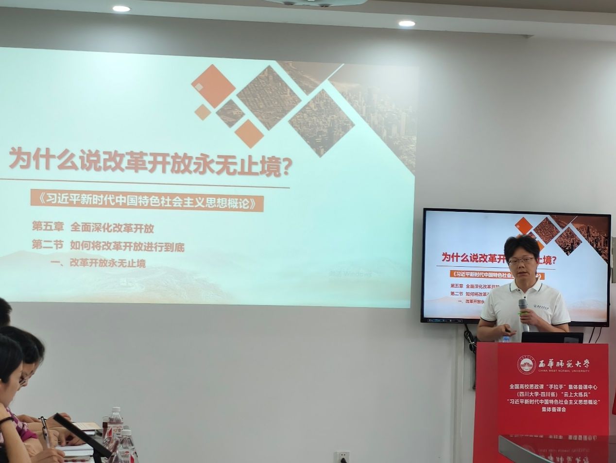 为深入推进习近平新时代中国特色社会主义思想进教材、进课堂、进头脑,切实提升思政课教学质量和水平,6月6日下午,全国高校思政课“手拉手”集体备课中心(四川大学——四川省)“云上大练兵”“习近平新时代中国特色社会主义思想概论”集体备课会在西华师范大学举行。必赢242net官网教师代表参加了此次集体备课会。