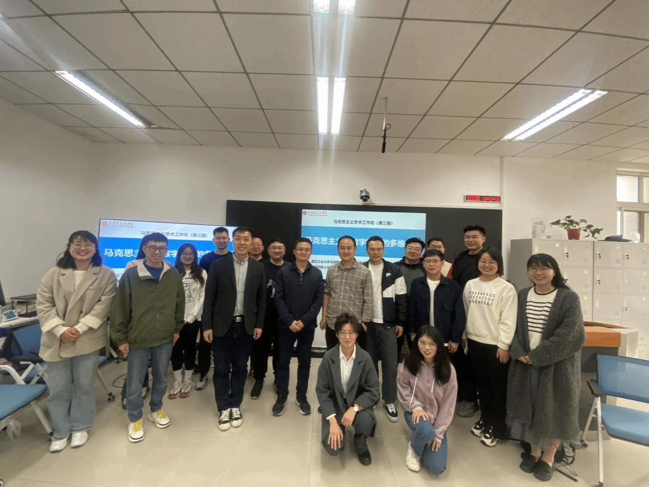 齐承水始终坚持科学研究中学术性和政治性的统一,以理论研究为现实问题解决提供智慧。比如,承担陕西省哲学社会科学研究专项“马克思主义经典文献研读助力高校‘青马工程’质量提升策略研究”。研究团队撰写《人类文明新形态对马克思主义文明观的原创性贡献》《数字技术赋能铸牢中华民族共同体意识研究》等多篇研究报告被上级部门采纳。齐承水立足“马克思主义科技与社会发展”研究团队,积极参加学院学术工作坊,在科研团队的交流合作中不断提升自身的学术水平。这些学术成果为讲好“为国铸剑”思政课奠定了坚实学理基础。