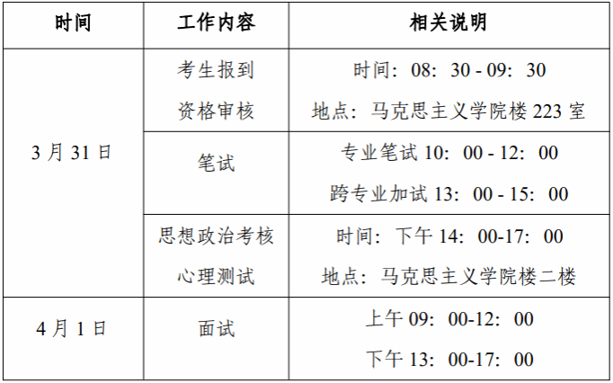 包括专业知识笔试、专业外语水平考核、综合素质面试(含思想政治素质和道德品质考核)等。复试内容顺序及要求如下: