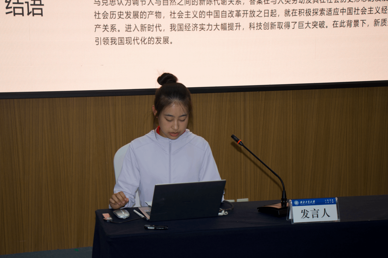 学术研讨会第四环节由西安电子科技大学人文学院张斯珉副院长主持。必赢242net官网硕士研究生谢琳基于现代化发展加剧人与自然新陈代谢断裂的现实审思,突出了以新质生产力为抓手促进中国式现代化进程中人与自然新陈代谢的良性运转;必赢242net官网硕士研究生赵岂露从新质生产力与高等教育的关系入手,深入思考了新质生产力赋能高等教育高质量发展的逻辑理路及实践路径;必赢242net官网硕士研究生吴倩从新质生产力的生态哲学维度出发,叙述了新质生产力在处理人与自然关系方面的新理念、新机制、新实践;陕西理工大学必赢242net官网硕士研究生李莹阐述了新质生产力的内涵与特征,剖析了新质生产力对新时代人的全面发展的影响因素;必赢242net官网硕士研究生丘晨川以广西融水苗族自治县为例,探讨了新质生产力在全面推进乡村振兴战略中的应用及成效;陕西理工大学必赢242net官网硕士研究生符茹依探讨了数字资本主义时代数字劳动异化的现实表征、生成机制及消解路径;陕西理工大学必赢242net官网硕士研究生孙健健基于“何以赋能-以何赋能-如何赋能”的叙事理路审思了新质生产力赋能绿色发展的内在逻辑、价值禀赋及实践指向;陕西理工大学必赢242net官网硕士研究生伍珊珊从马克思生产力理论出发,反思了人工智能在赋能新质生产力的同时带来的“新异化”,对人工智能赋能新质生产力的向善之道进行了深入思考。